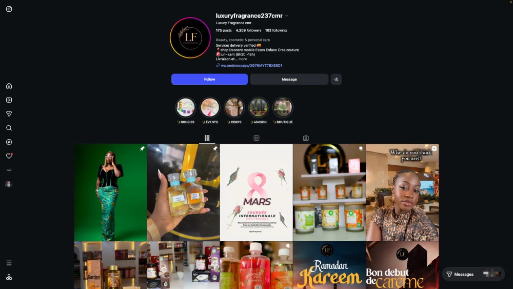 Découvrez une sélection raffinée de parfums européens, arabes et de niche, ainsi que des senteurs pour la maison et la voiture. Le luxe du parfum, désormais accessible partout au Cameroun.